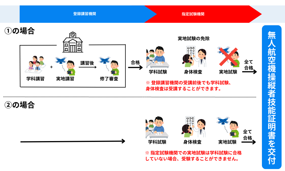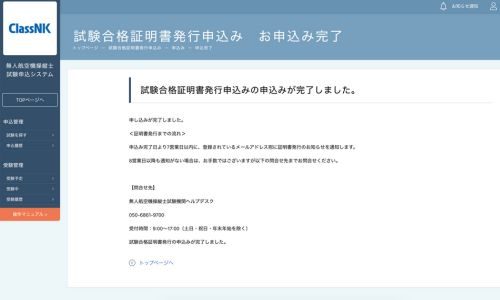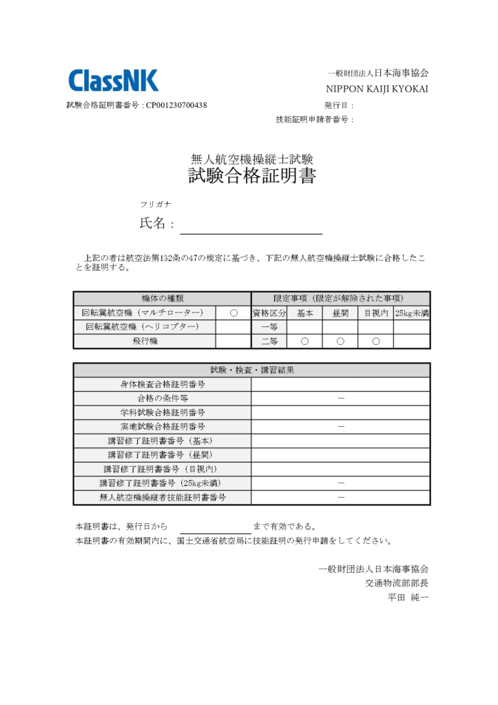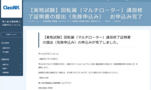 無人航空機操縦士試験(以下、「ClassNK」という)にて試験の申し込みをしていただきます。
