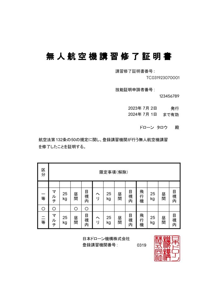 試験合格証明書を受理後、DIPS2.0にログインし、「技能証明の取得申請へ > 技能証明書の新規交付 」にて技能証明書の新規交付の手続きをお願いいたします。申請の際に無人航空機講習修了証明書と試験合格証明書の電子ファイルが必要となります。申請後、郵送にて技能証明が国より送付されます。