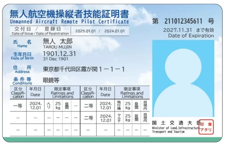 ※ 一等無人航空機操縦士の場合、登録免許税として¥3,000(税込)を納付いただく必要がございます。